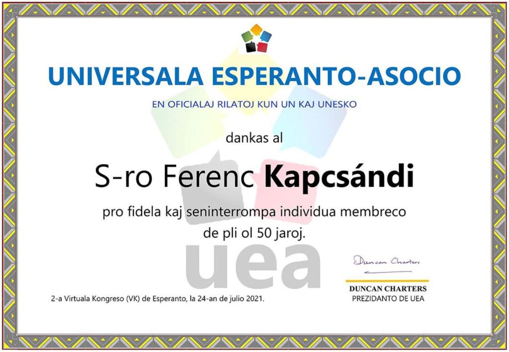 Kun profunda malĝojo ni anoncas, ke la klubestro de Juna Koro Esperanto-metiejo (Zalaegerszeg), Ferenc Kapcsándi, forpasis la 27-an de januaro 2026, en sia 87a jaro. La nomo de Ferenc Kapcsándi estis sinonima kun la esperanto-movado en la urbo Zalaegerszeg, ĝia ekiro, lanĉo kaj gvidado ĝis lia morto. Hungaria Esperanto-Asocio memoras lin poreterne.